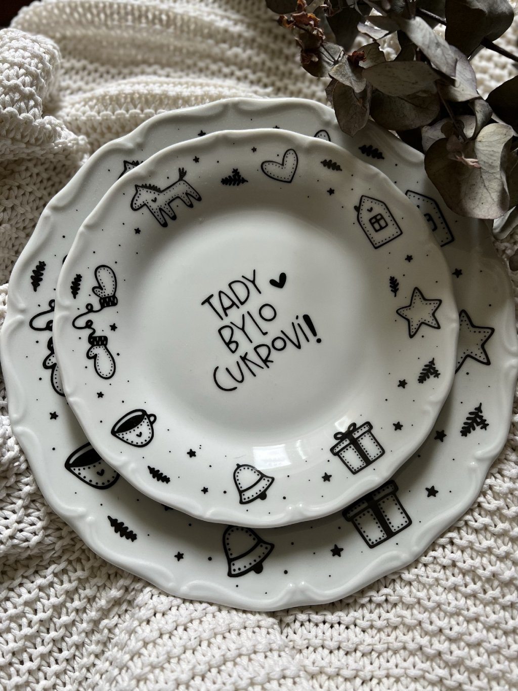 Talíře TADY BYLO CUKROVÍ jsou z kolekce tištěných talířů, které vznikly v roce 2022. Jedná se o autorský motiv od Estetič.Ka. Původně byly ručně malované, ale v rámci užívání se přešlo na vhodnější výrobu. Motiv lze považovat za signature výrobek značky Estetič.Ka.