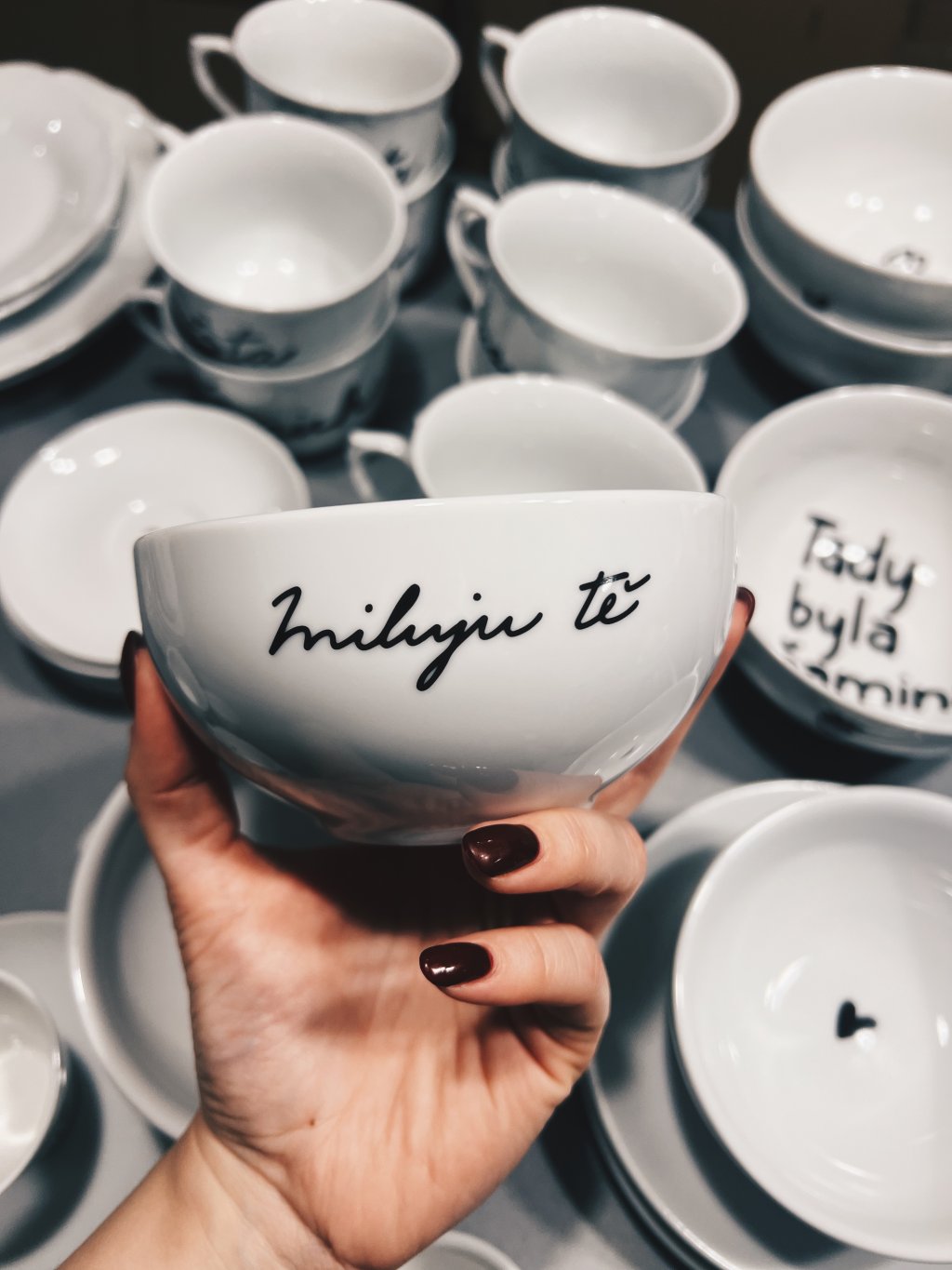 Užívání: hrnky se mohou dávat běžně do myčky, mikrovlnky a používat na nich příbory