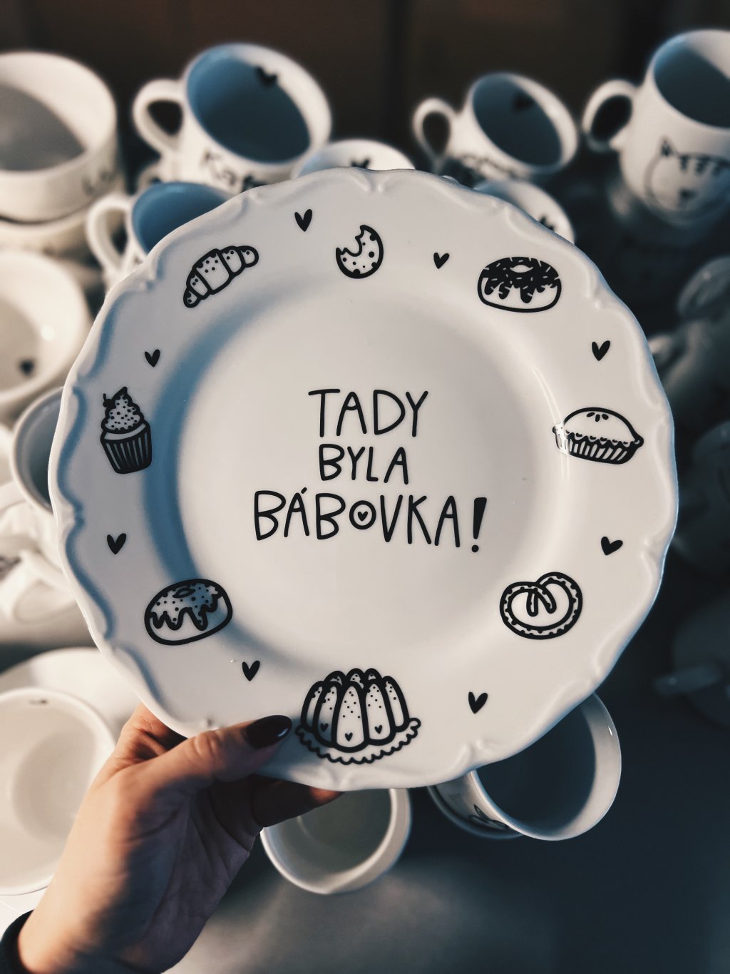 Talíře TADY BYLA BÁBOVKA jsou novým rozšířením nabídky mého autorského sloganu "tady byla/o ..." . Jedná se o autorský motiv od Estetič.Ka. Původně byly ručně malované, ale v rámci užívání se přešlo na vhodnější výrobu.