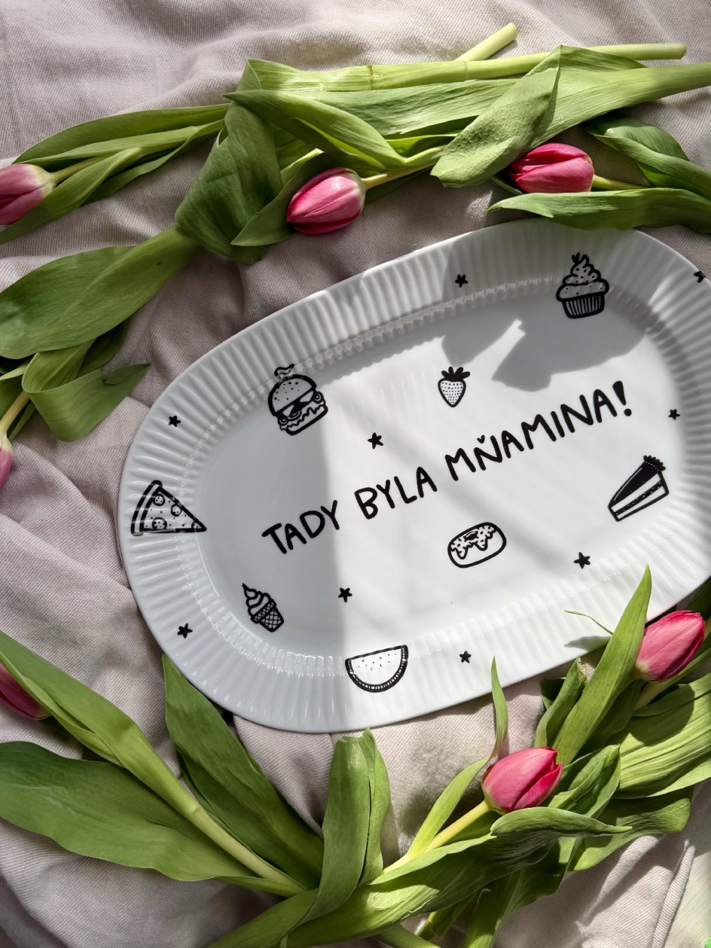 Talíře TADY BYLA MNAMKA jsou novým rozšířením nabídky mého autorského sloganu "tady byla/o ..." . Jedná se o autorský motiv od Estetič.Ka. Původně byly ručně malované, ale v rámci užívání se přešlo na vhodnější výrobu.